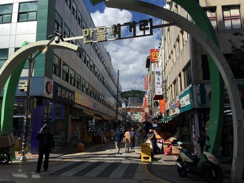 Le marché de Jagalchi est le plus grand marché de fruits de mer de Corée du Sud. Situé dans la région de Nampo-dong du district de Jung, ce marché a vu le jour pendant la guerre de Corée.